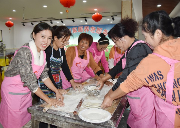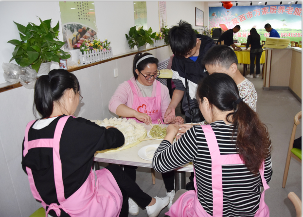 組織并籌備了一個假期,今天早上八點半,大家?guī)е约簻蕚涞娜R陽梨、八寶粥、牛奶、麥片,各種水果等,在我們的美女領導葛經理帶領下,我們家的眾多大姐浩浩蕩蕩的來到了萬家居敬老院,陪老人們聊天,詢問老人的身體狀況,并為敬老院的老人們包餃子,和他們分享蛋糕,陪老人們度過一個充實的重陽節(jié)。